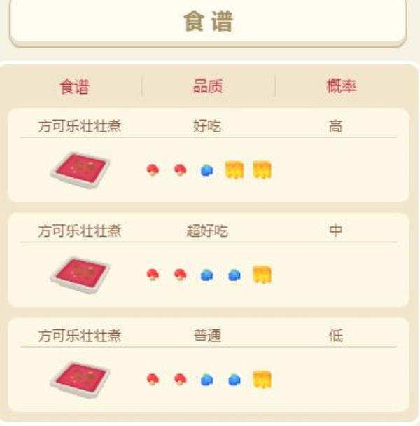 用【方可乐壮壮煮】最容易出腕力,配方材料:2小红蘑菇+2小蓝+1大黄。