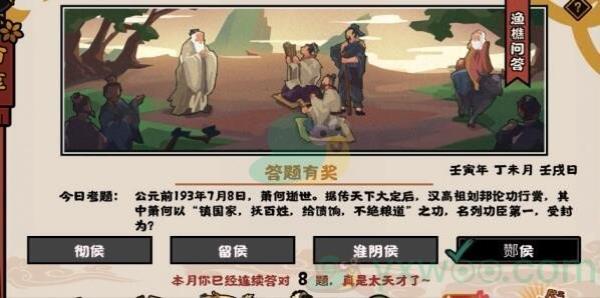 以上就是小编给大家带来的关于无悔华夏7月8日渔樵问答答案分享的全部内容,更多精彩内容请关注本网站,小编将持续更新更多相关攻略。