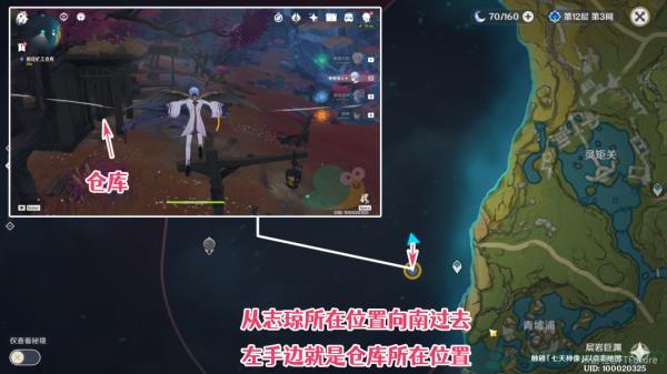 我们直接从七天神像出发,飞到下方山洞洞口,顺着洞口往里走即可,为了更加直观的演示,这里直接从传送开始用动图演示前往的过程: