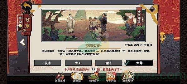 以上就是小编给大家带来的关于无悔华夏6月13日渔樵问答答案分享的全部内容,更多精彩内容请关注本网站,小编将持续更新更多相关攻略。