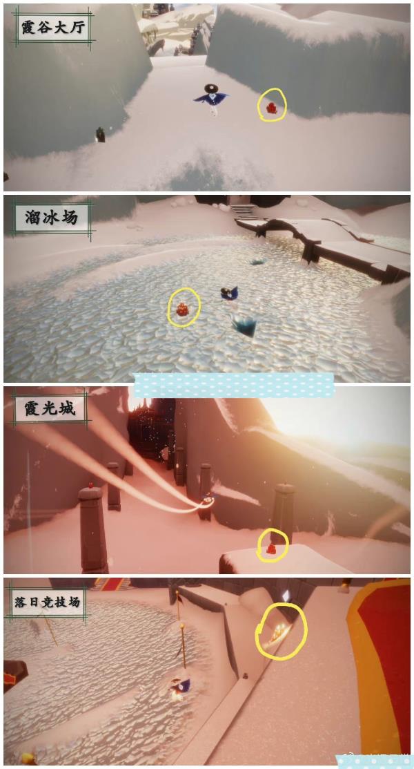 今天的蜡烛主要集中在云野中,具体位置看下图!(今天有额为的蜡烛收集任务,可以收获更多的蜡烛)