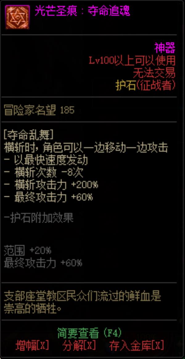 DNF征战者光芒圣痕护石属性介绍