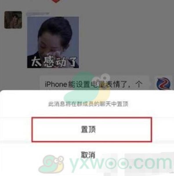 2、然后就会出现窗口,点击置顶,需要管理员或者群主权限;