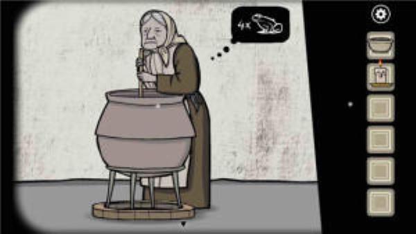10、四只蛙,在锅下点火[木柴和蜡烛]。搅拌用碗盛汤给叔叔,吐出钥匙。开奶奶身边的箱子。得到黑方,教堂同样步骤。搞定!