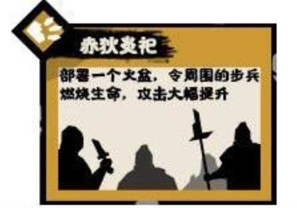赤狄炎祀——部署一个火盆,令周围的步兵燃烧生命,攻击大幅提升。