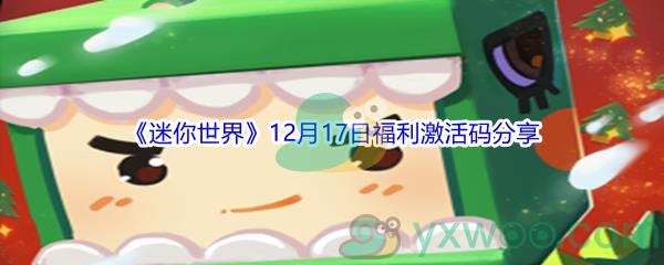 以上就是小编给大家带来的关于2021迷你世界12月17日福利激活码分享的全部内容,更多精彩内容请关注本网站,小编将持续更新更多相关攻略。