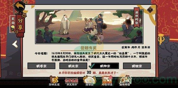 明代的时候发生了好多的事情,好多的人都比较喜欢研究历史,这样才能让自己的思考更加成熟。那么无悔华夏5月30日渔樵问答答案是什么呢?下面小编给大家详细介绍下,还不清楚的小伙伴们快来看看吧!