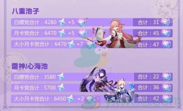 大小月卡党八重池合计:6470原石+7个纠缠之缘(合计47抽纠缠之缘)
