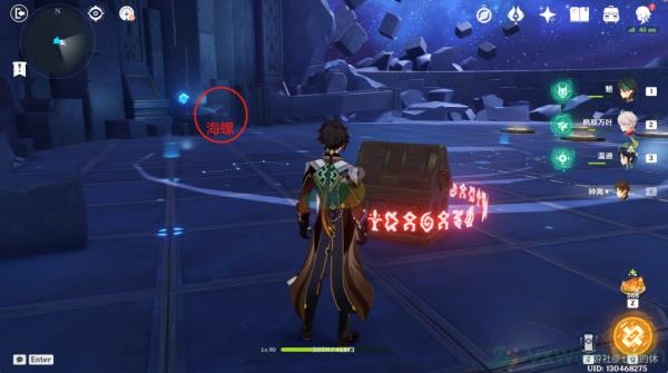 往里走,经过彩虹路,即可看到宝箱,海螺在红圈标记位置