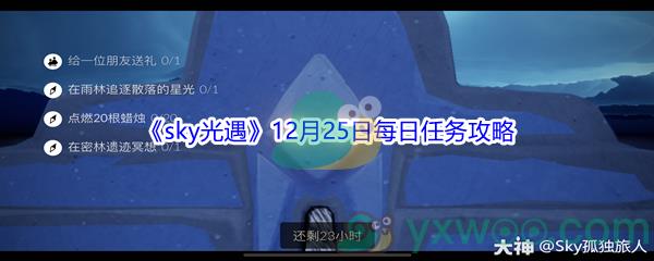 以上就是小编给大家带来的关于2021Sky光遇12月25日每日任务攻略的全部内容,更多精彩内容请关注本网站,小编将持续更新更多相关攻略。